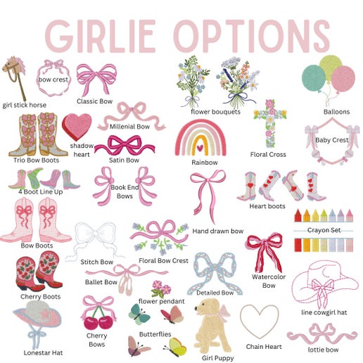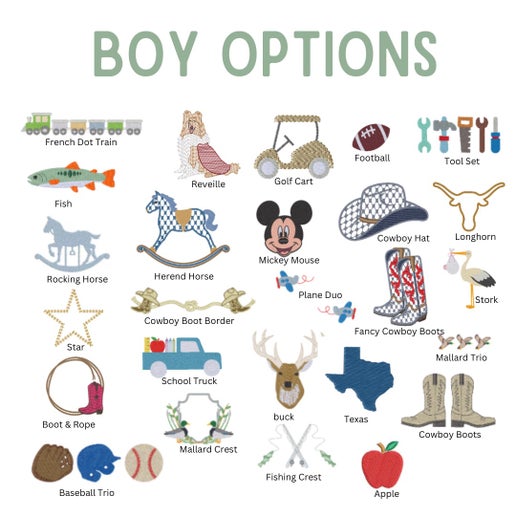 - Please include all details in the personalization box below. This includes the type of font/monogram/embroidery picture you would like. All are labeled for you to list which one you would like on your item. Thank you!